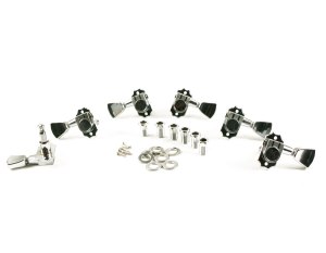 Introducing the NEW Kluson Revolution 19:1 high ratio tuning machine. Kluson has truly introduced a game changer with the traditional footprint and newly designed sealed die-cast housing. These state of the art tuners are designed to directly retrofit die-cast tuners with a hex head bushing, traditional Kluson two-screw mounting pattern and modern 25/64 inch peghole (10mm). The vintage outline, metal keystone button and pin-stripes pay tribute to Kluson heritage while the brand new housing appearance incorporates all the features the modern guitarist demands. High gear ratio guarantees silky smooth operation, fine tuning stability and no backlash all in a sealed one-piece housing that looks like it belongs in a jewelry case! All mounting hardware is included.