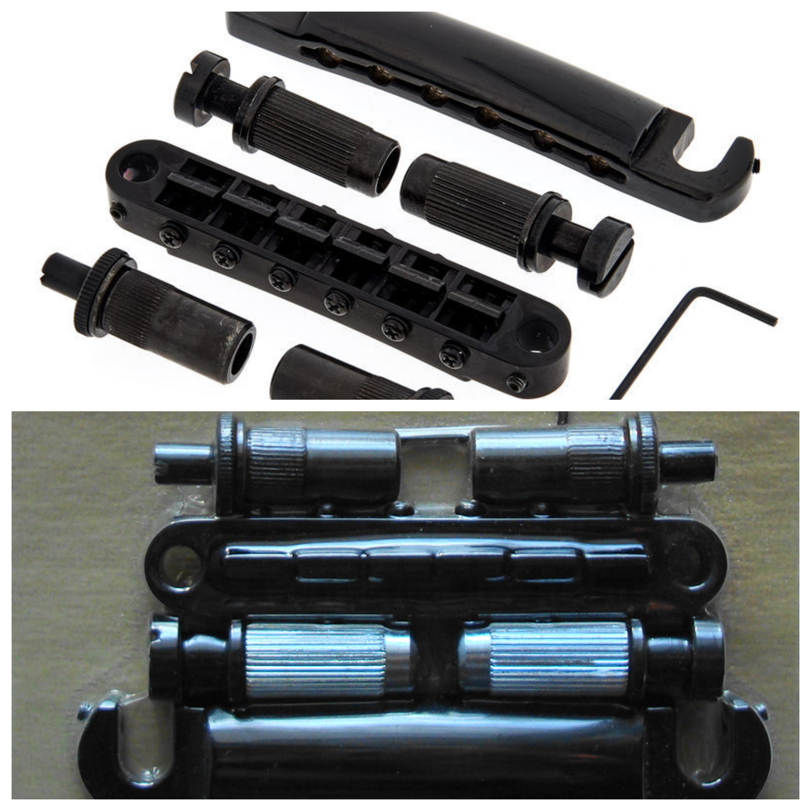 Tone Pros components completely solidify your instrument! Your System II bridge will not only just stay on, our system solidifies your bridge in place like stone! In most cases after installation and adjustment, your bridge and tailpiece will not move or “wiggle” at all. Because of our design, even play or movement in the threads is reduced so that when you adjust your action and intonation, it is set and solid. This of course improves your sustain and tonal qualities, makes harmonics “jump” out of your guitar, and causes your instrument to play and stay in tune better.