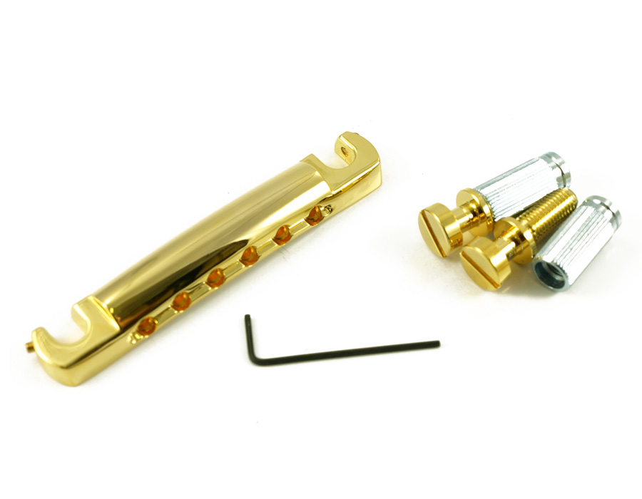 A true to “50’s Vintage” style lightweight Aluminum Tailpiece Set with TonePros Locking Feature. The aluminum body provides an extra resonant quality and the TonePros patented locking feature adds significantly improved sustain and tuning stability. This set comes with matching US Thread Studs.