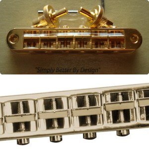 This Locking Nashville style bridge has many improvements including intonation adjustment on the pickup side; phillips head saddle adjustment screws, and pre-notched saddles for quick installation. Standard small post and standard threaded insert. Direct retrofit for most USA guitars without modification.