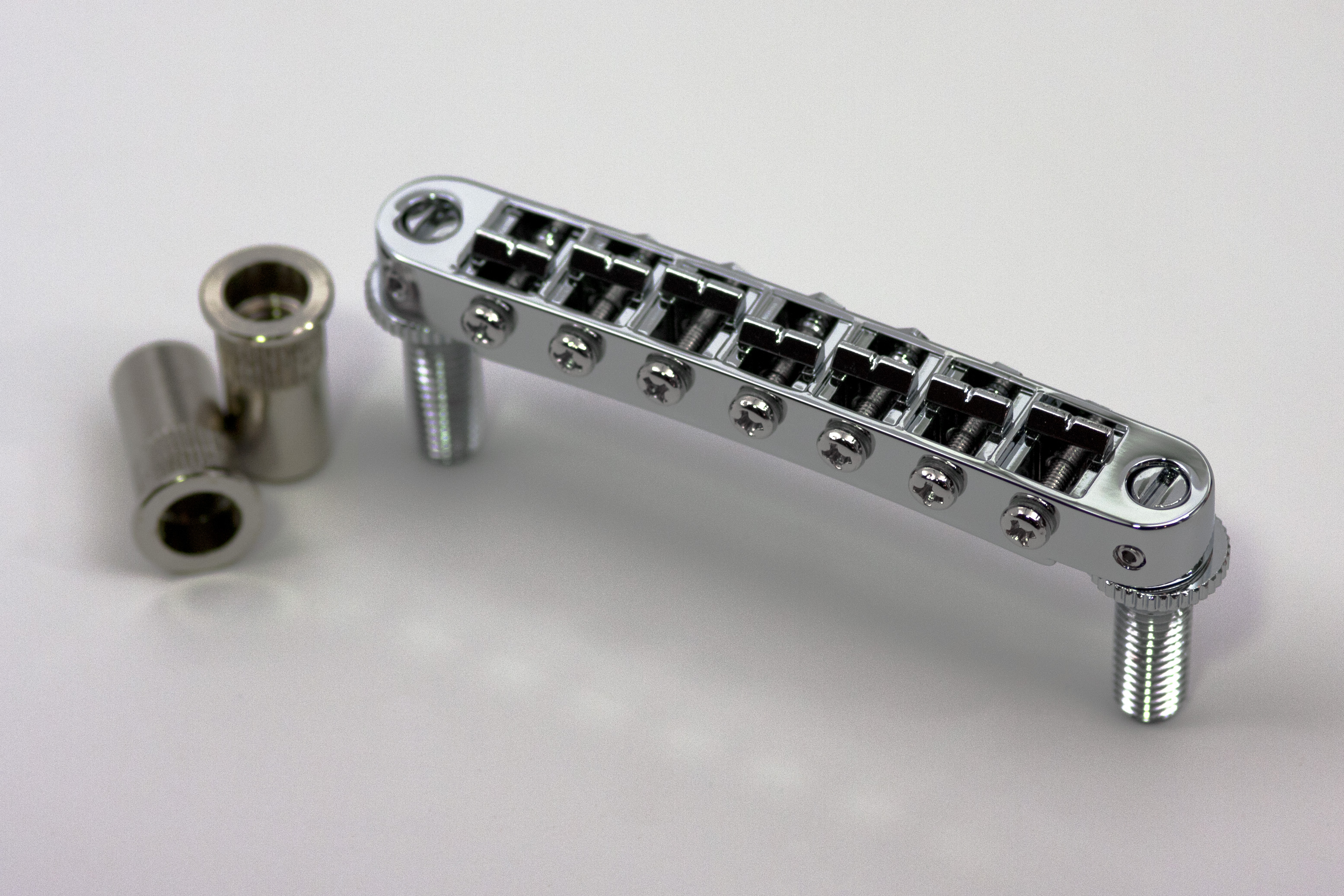 The TP7 is specifically designed for 7-String model guitars. It maintains the same locking and tonal features of TonePros model T3BT locking bridge. It features metric threads that fit most imported 7-String guitars and pre-notched saddles.